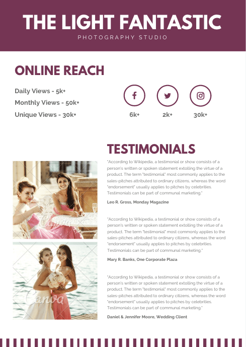 It is free, easy to handle, and offers lots of images, shapes, graphic elements, etc. You will need just your refined taste, a couple of hours, and patience to make a stylish and functional media kit. Canva is really that very tool for newbies in graphic design.