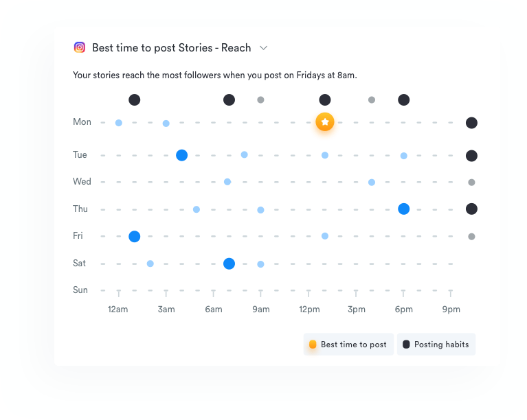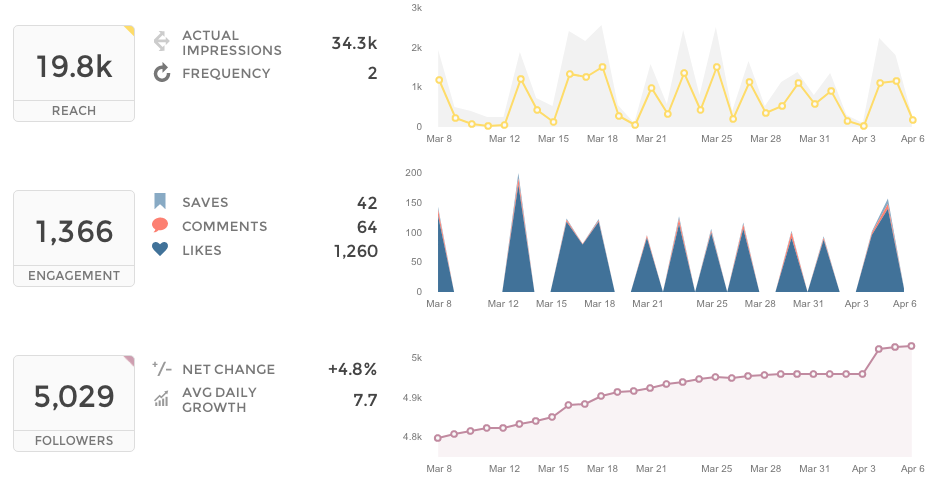 If you were looking for one platform to schedule, publish, and track analytics for several Instagram accounts, here it is. Regarding the analytics, Sprout Social provides a gazillion metrics: clicks, saves, and replies in Instagram Stories, in-depth analytics of posts and an account overall. You can also track content performance, competitor data, trends in hashtag usage. What is more, you will be able to compare campaigns as well as track data across set time periods.