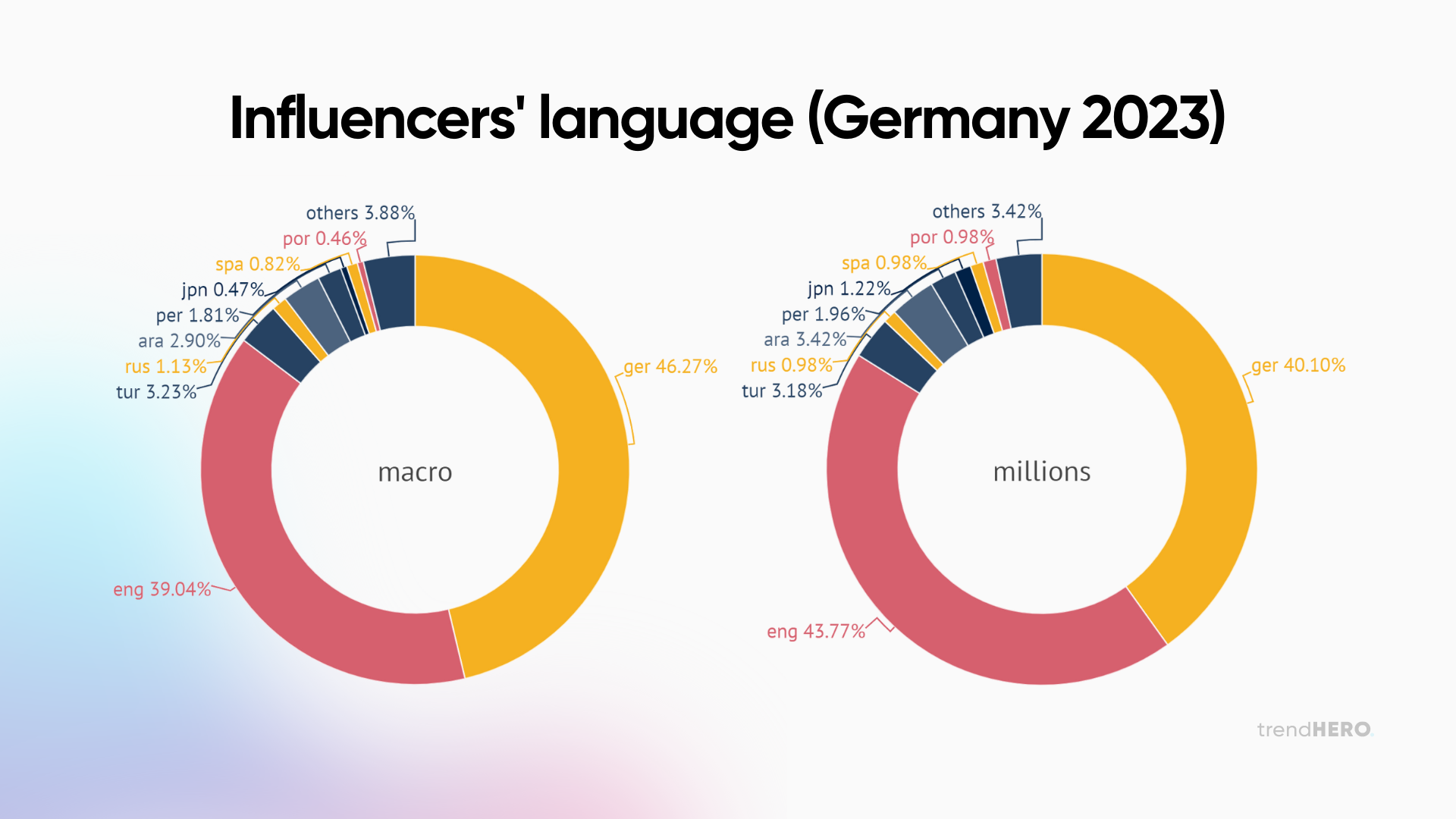 Wir haben über 700.000 (1 Tausend Follower und mehr) aus Deutschland recherchiert, mit Informationen über Sprache, Follower-Anzahl, Engagement-Rate, Kontotyp, Geschlecht der Influencer, Erwähnungen usw. Außerdem haben wir Werbe-Posts für den Winter (Dez. ’22 – Mär. ’23) untersucht, um alle Weihnachts- und Neujahrspromotionskampagnen einzubeziehen.