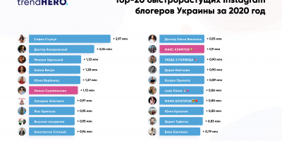 Топ-20 быстрорастущих Instagram блогеров из Украины в 2020 году