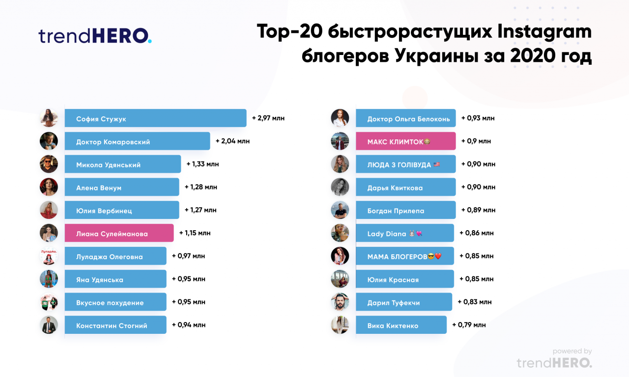 Топ блогеров Украины по приросту подписчиков за 2021 год